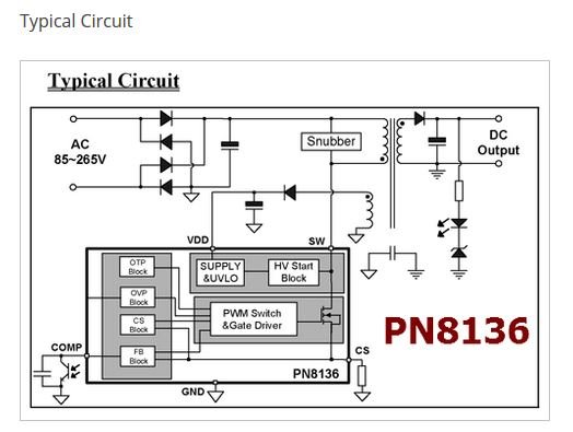 Pregledom ustanovljeno da je mosfet(da li je PN8136?) u mrezi oksplodirao,kao i osigurac t1.6a ,Dioda M7(primar) u prekidu.