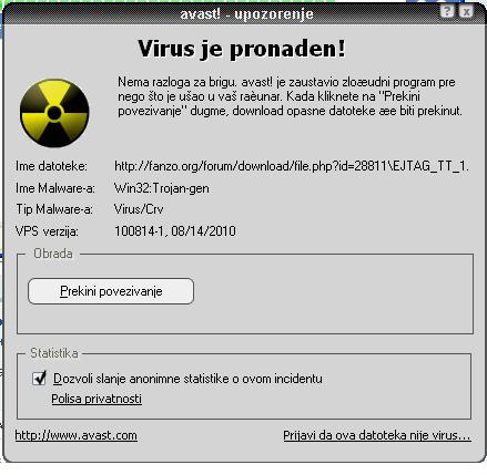 a ima virus,ako smeta virus nema jtaga.kad se radi isključuje se antivirusni program.