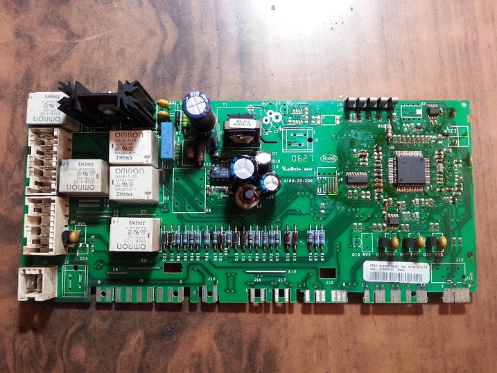 eeprom 24C64 Mašina se jednostavno čudno ponaša. Sama ponekad upali power lampicu. Kada se startuje, počne da radi, pa stane bez ikakvog pravila. Pritiskom na taster za start, ona nastavi sa radom. Tokom rada pogasi sve lampice, pa ih upali i nastavi sa radom. Na kraju dovrši pranje normalno. Primetio sam da na programu za pranje na 95 stepeni se drugačije ponaša nego na programu za 40 stepeni.