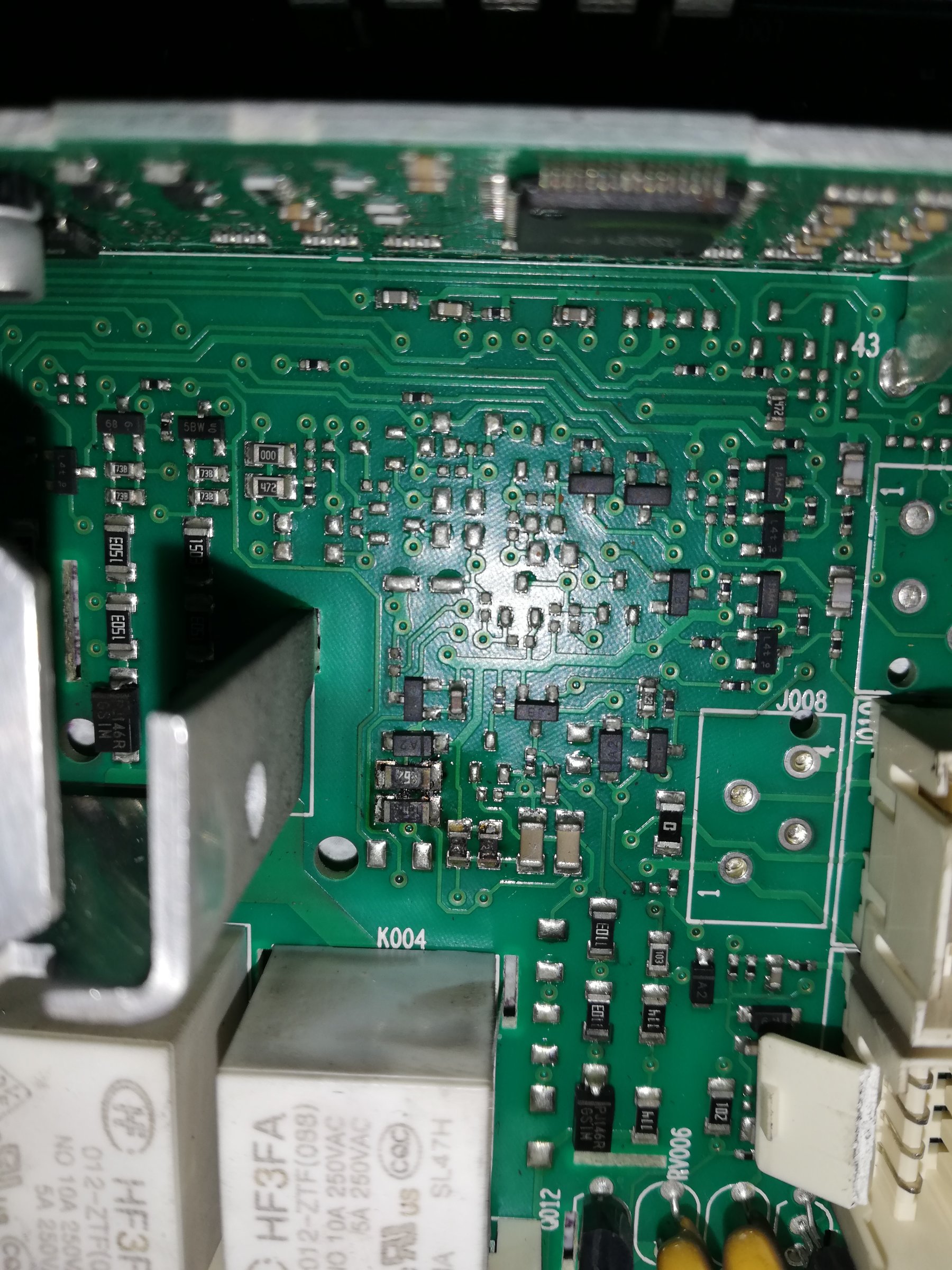 Masina ne ukljucuje centrifugiranje. Kontinuirano okrece bubanj, ali bez ubrzavanja. Na ploci programatora vidljivo je ostecenje SMD otpornika. To su otpornici po dva u paraleli, dva vertikalno postavljena i dva horizontalno iznad releja sa oznakom K004. Ukoliko neko ima semu ili moze videti za programatora molim za pomoc oko njihove vrednosti.