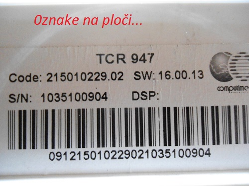 Oznake sa ploče su...TCR 947 Code 215010229.02 SW 16.00.13. S/N 1035100904