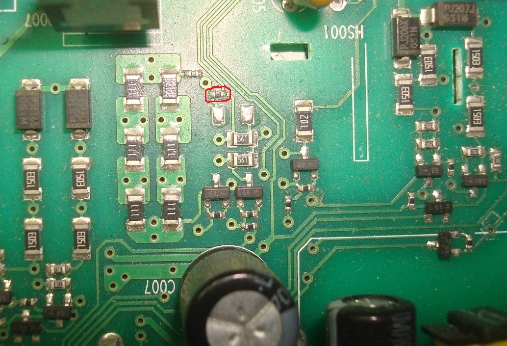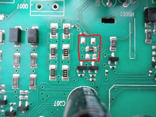 Potrebna mi je vrijednost ova dva SMD otpotnika koji su označeni na slikama...a nalaze se ispod hladnjaka....Ako neko ima ovakvu ploču da izmjeri ili ako ima od ranije te podatke u arhivi...!!! Napominjem da su stari oštećeni otpornici uklonjeni sa ploče...i na slikama se vide njihova mjesta za ugradnju...Ovaj u sredini otpornik... u zaokruženom crvenom polju...koje sam obilježio... je u redu...znači treba mi vrijednost ovoga više prema vrhu slike a ta je ???? a vrijednost ovoga bliže dnu slike je ?????