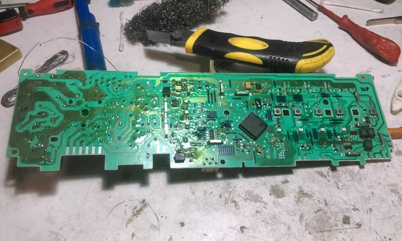 Ploca je oprana a ovo sto vidis je fluks pasta i spremio sam je za lemljenje. A selektor sam otvorio i ocistio.