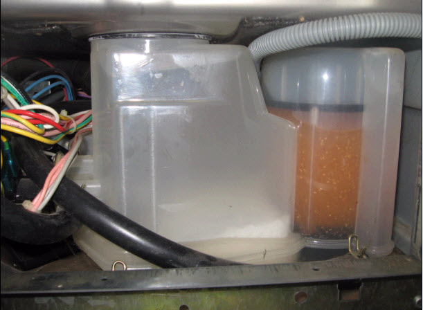 Poceo sam s tim da je onaj majstor u pravu, pa sam krenuo otpozadi, tj od odvoda vode. Proverio creva, skinuo drain pumpu, ocistio je, iscackao sve iz posude ispod filtera, produvao crevo sa presostata.