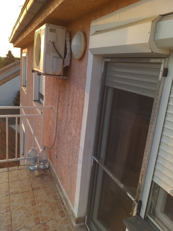 Klima na terasi mi je niža od vrata terase pa nemam mogućnost da odvod kondenzata provučem iznad vrata do oluka.Prije nekoliko godina sam uradio jednostavno rešenje koje evo radi bez greške.
