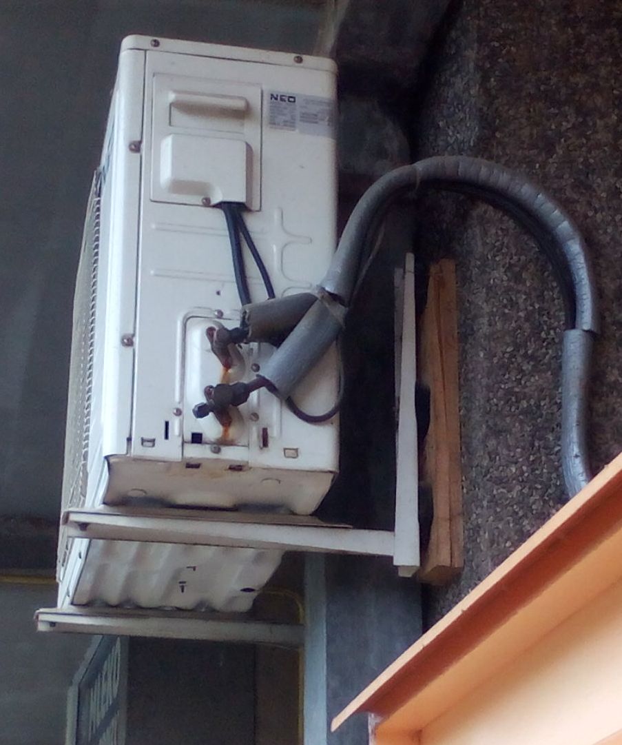 Pa neš ti! Tip zavidava neko zaštitno kućište za prozorsku klimu i skale su mu zavezane. Klima (teži dio priće) dolazi kasnije i gura se iznutra na to kučište. Osim toga, to je Indijac, ima ih 1200 miliona i nema više od 45 kg. Potrošna roba!