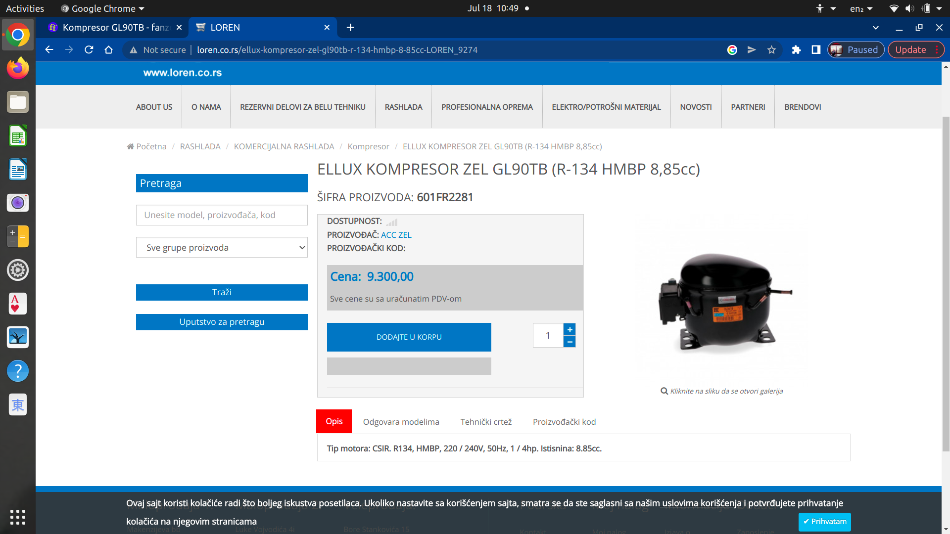 Ali nije to sada toliko bitno kolko sto mi je bitno da nadjem Novi kompresor koji pase . Original je GL90TB ali okrenuo sam sve firme koje sam mogao naci po internetu i niko ga nema na lageru.