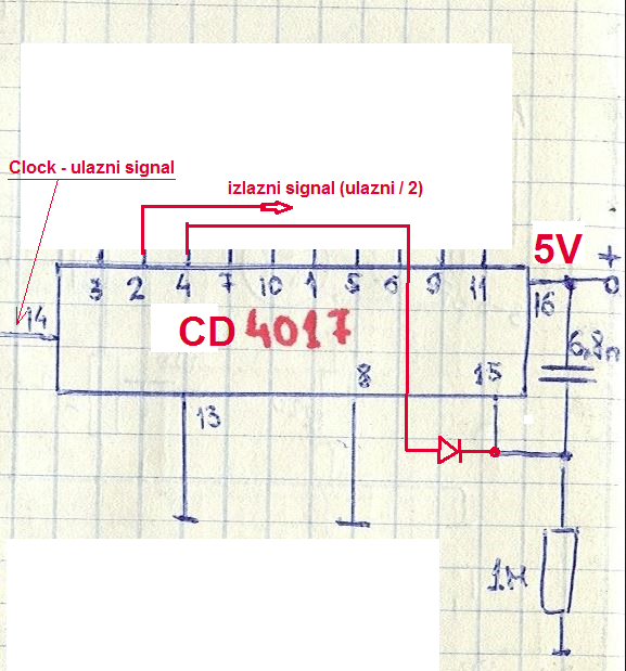 Pošto si već napravio generator impulsa sa 555 evo ti i delitelj sa kolom 4017.