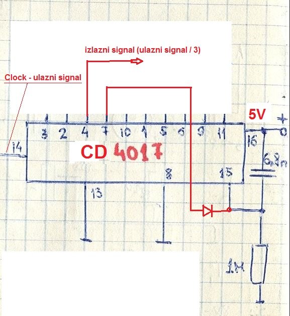 Na prvoj šemi, ulazni signal se dijeli sa dva dok na sledećoj ulazni signal se dijeli sa 3.