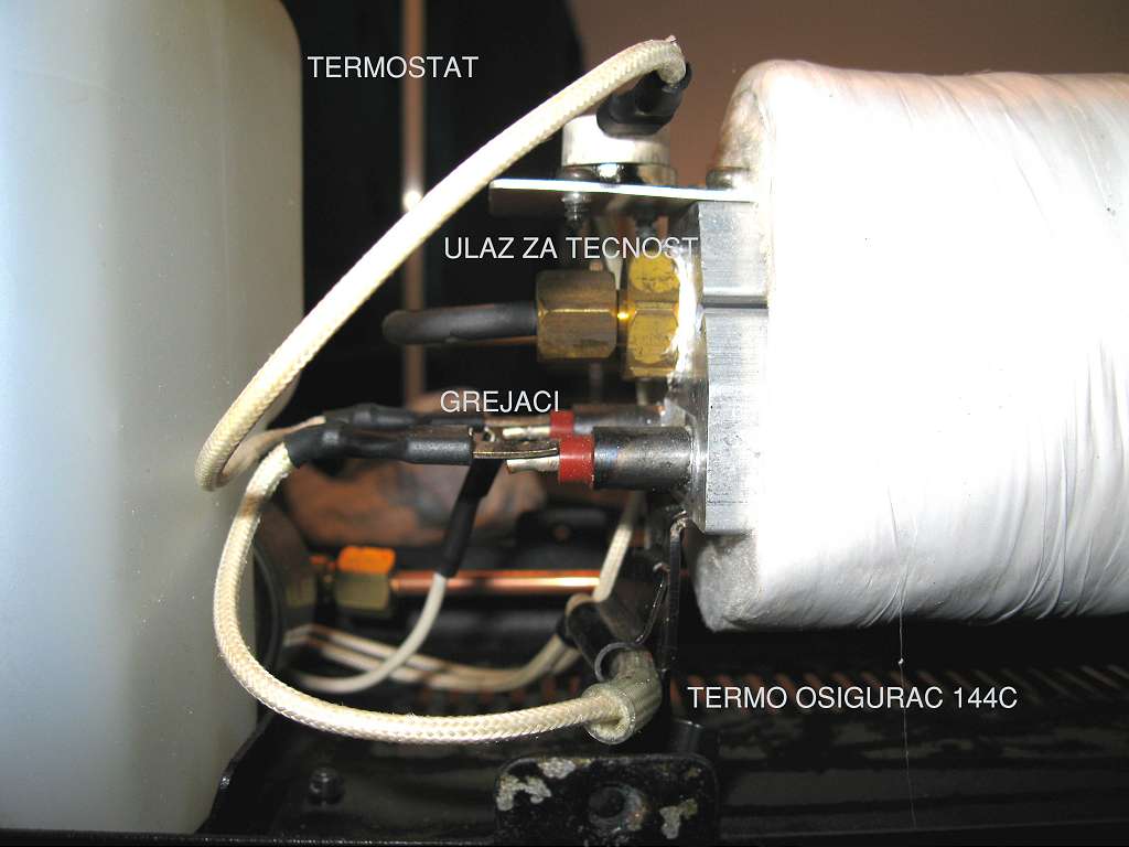 Ubacen je Termoprekidac na 160C i radi sve bez problema. Termo osigurac nisam uspeo da nadjem na 144C pa je ubacen na 157C :pivopije: