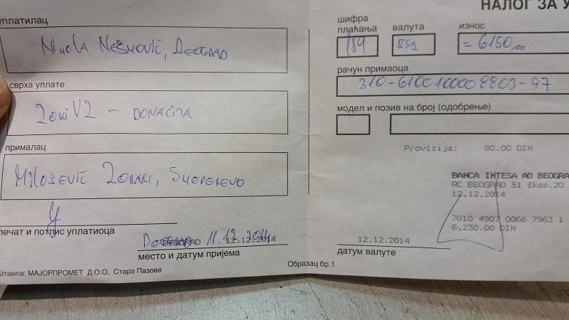 След като ги преведа по банковата сметка в Сърбия, ще публикувам и преводния документ.