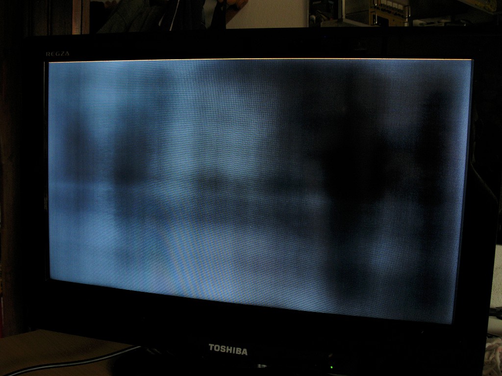 Stranka kaze da je poceo u toku rada da izbacuje zute vertikalne pruge kroz sliku od prilike u pravcu televiziskog znaka. Prvo su bile blede, pa zatim sve tamnije. Posle nekoliko dana vise nije bilo slike samo kad se upali ima zuta linija oko 2mm u gornjem delu ekrana. Posle 1min. rada pocinje da se pravi kako bi to nazvao neka magla, a ton je prisutan. Prva slika je kad se upali TV, a druga slika je posle oko 1min. rada.