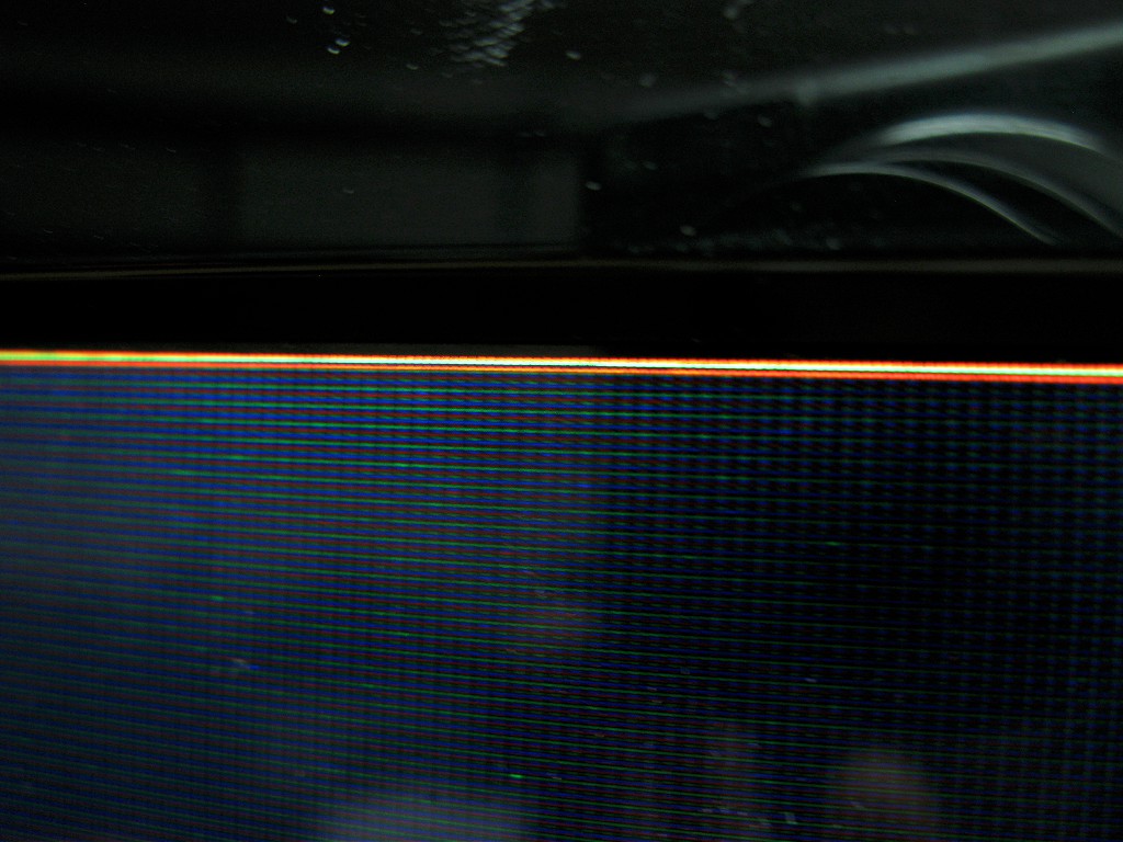 U vrhu ekrana ona zuta linija nije cista vec se vidi da ima slike na njoj kad se pusti neki program. Slicno kao kad ode vertikala na CRT samo sto je ovde crta skroz gore.