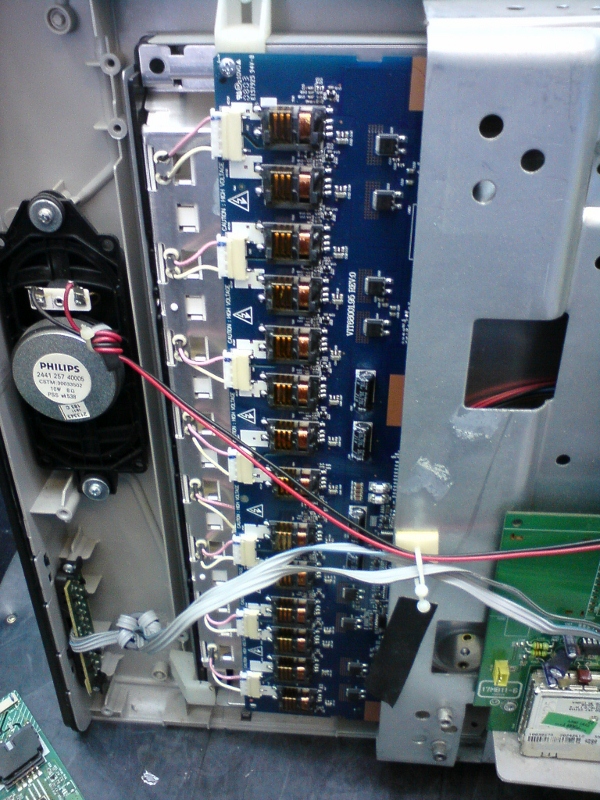 Zamenjen kompletan invertor sa oznakom VIT6800195 REV0,jer je popravka originalnog neisplativa, jedna lampa je isključena, ali i bez nje je slika ok, drugih prepravki nije bilo.