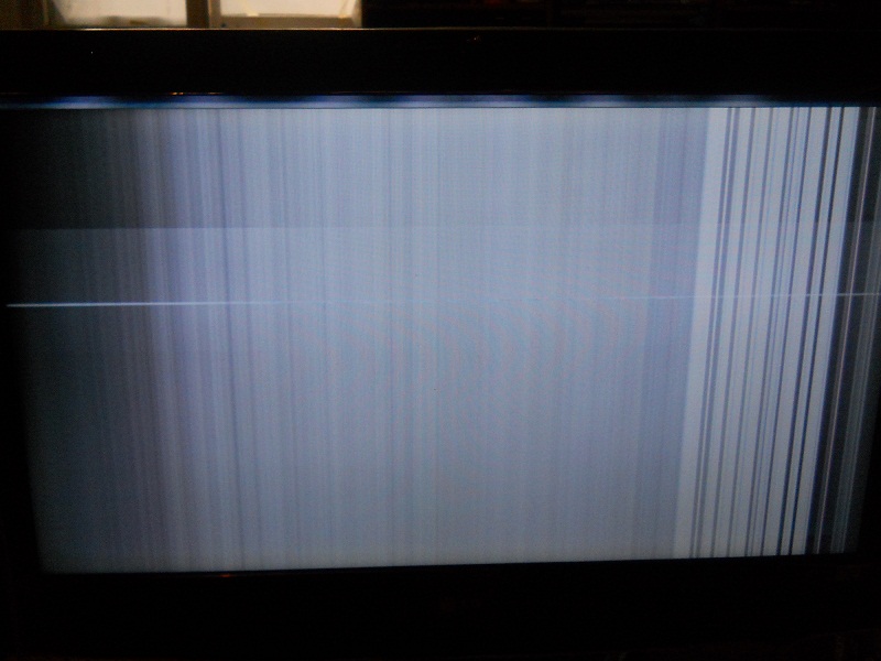 Vjerojatno neispravan lcd panel (display board).Sličnu grešku imao na Philipsu i Samsungu.