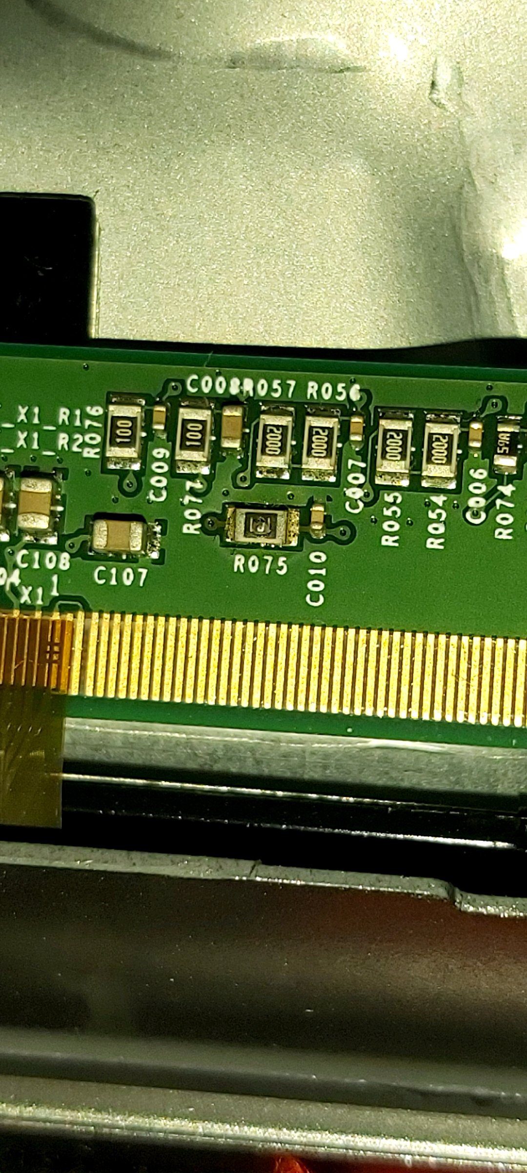 Ovaj otpornik R075 izgleda da nije u redu, kao da treba da je 100 ili 150 oma, a na merenje pokazuje 2K4. U pocetku dok ima slika na njemu ima napon 30V, posle nestaje i on. Stavljao i te vrednosti, ali nista. Mereni svi ostali smd kondenzatori na letvu od panela da nije neki u kratak spoj, megjutim nista. Izgleda panel je zavrsio svoje na ovom TV-u, a proizveden April 2018g.