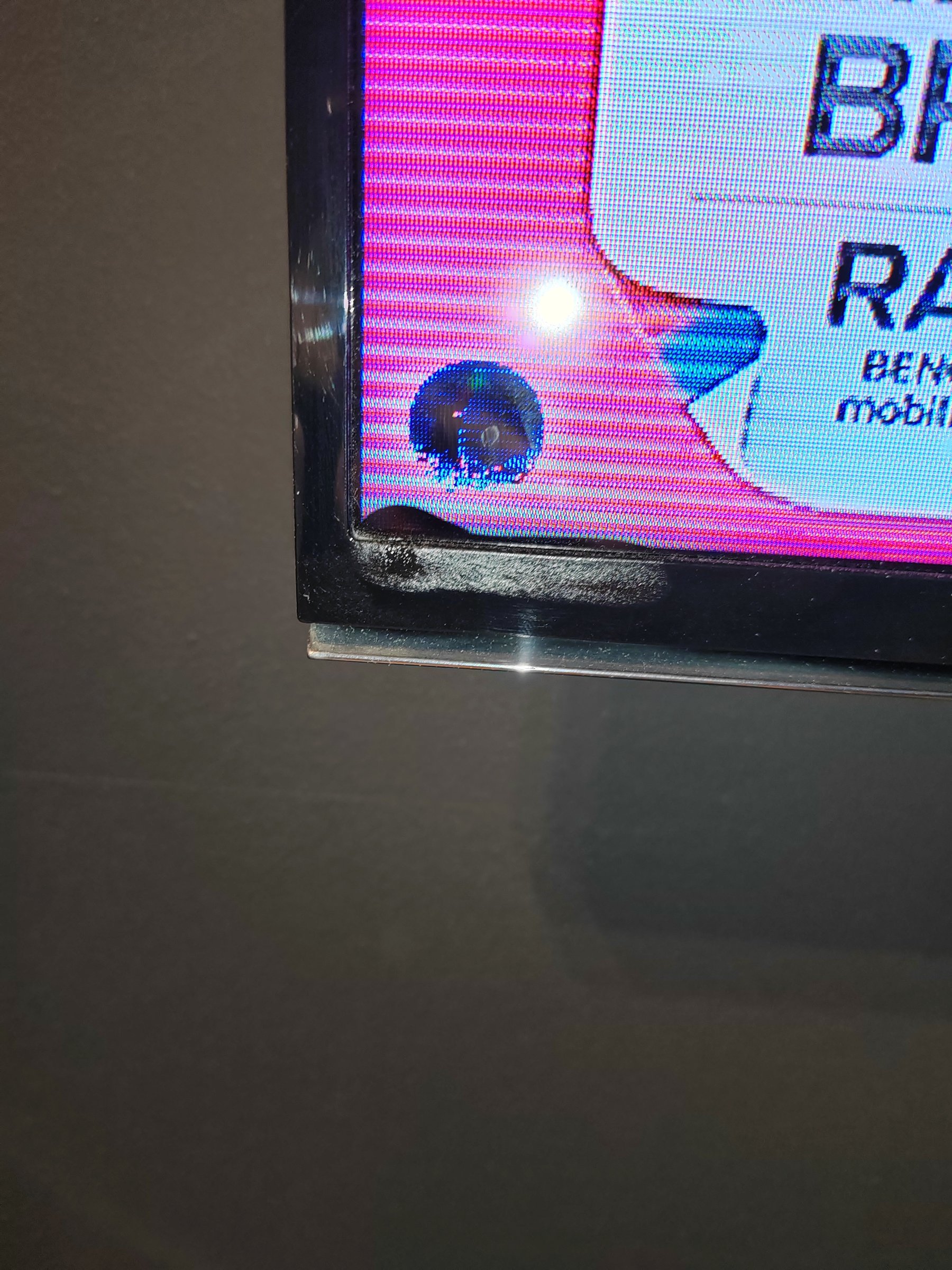 Primećena crna mrlja u dnu ekrana na levoj strani nakon sat vremena rada i kada sam prisao blizu tv-a video da je u tom delu pocela da se topi plastika na okviru koliko je bilo zagrejano nekih 3-4 cm u samom uglu.