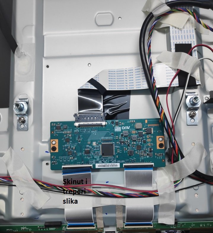 Za početak, ti možeš za probu krenuti od lakšeg načina popravke. Ako između t-con ploće i panela postoje dva flet kabla, prvo odspoj jedan kabal pa probaj kako se aparat ponaša. Zatim, vrati taj flet pa odspoj drugi i vidi kako se tada ponaša. Sa jednim od njih bi trebalo da imaš pola slike ali da ne treperi. Na taj način ćeš znati na kojoj strani panela je kvar.