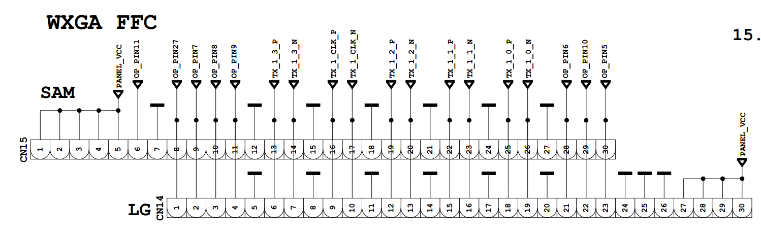 E sad, razlika je sledeća: na zamenskoj ploči je LVDS konektor bio zalemljen na drugoj poziciji, odnosno bio je zalemljen za poziciji za Samsung panel, gde je VCC levo. Ja sam konektor prelemio na poziciju koja je meni potrebna, da je VCC desno. Tako je i bilo na originalnoj ploči, a to se i po šemi vidi.