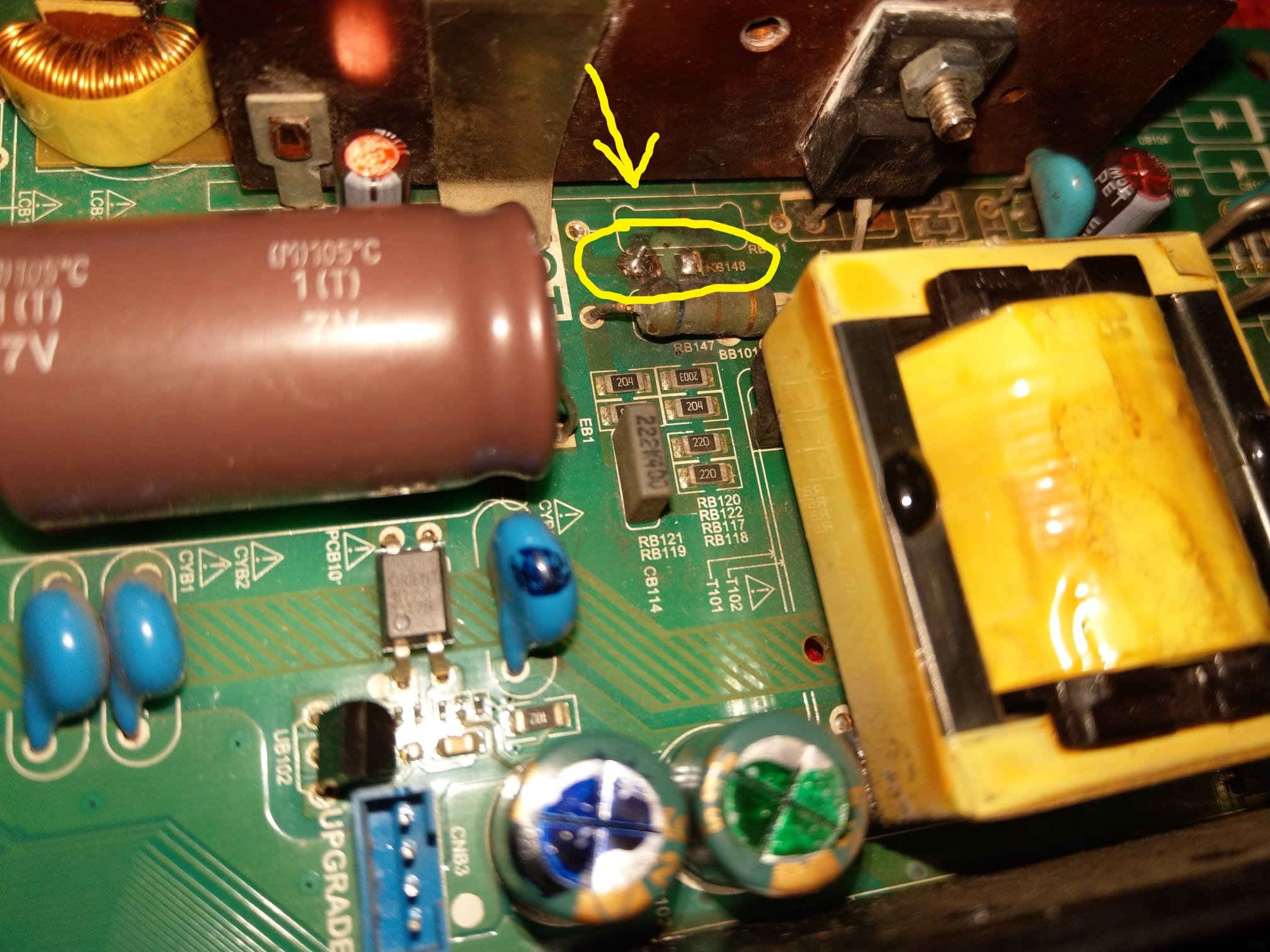 Što se tiče RB148, pretpostavljam da je dio prigušnog kruga kojeg čine prigušna brza dioda i RC član. Ako je R148 jednim krajem na plusu mrežnog elka a drugim na katodi brze diode onda se tu radi o vrijednosti od oko 68KΩ-100KΩ.