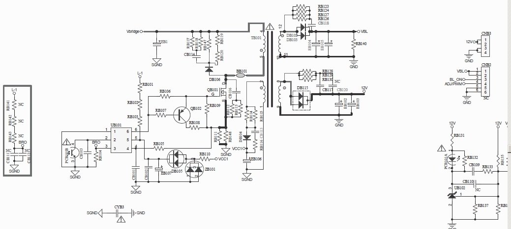 DETALJAN OPIS KVARA i PREDUZETE RADNJE:Tv je dosao sa kvarom ne radi nista ,nema stb,pregledom je utvrdjena neispravnost mreznog kondenzatora (naduvan),takodje neispravan kondenzator EB106,107 i 801.Zamenom ovih elemenata sam dobio stb led koja se pali i gasi ,napon na diodama DB101,102,801,806 je 54V,na diodi DB101,pojavi se 12V pa nestane.Da li neko zna koja je vrednost ovih otpornika RB148 i RB105,jedan je pukao a za drugi nisam sigurn da li je prava vrednost,neko je ranije stavio ovaj 122.Pozdrav