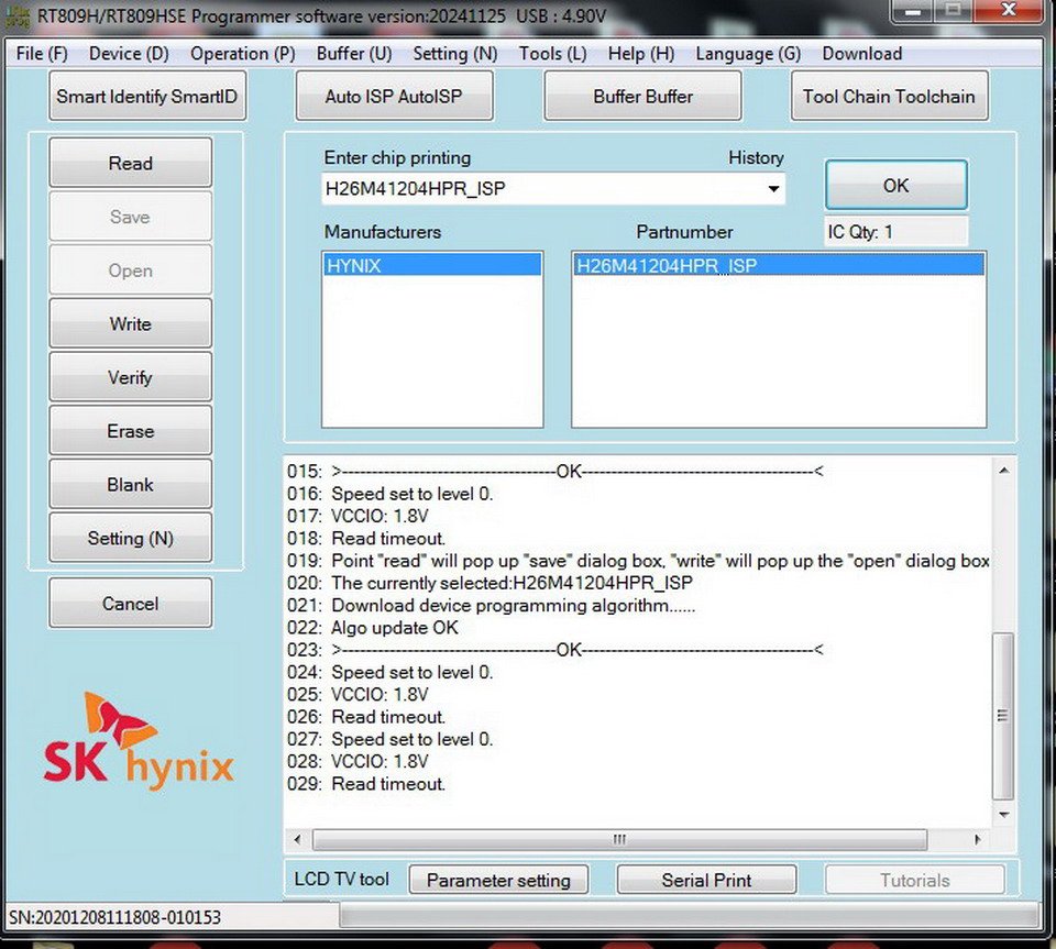 Ako se odlucis na zamenu eMMC ja bih na tvom mestu pre pokusao staviti neki Samsung KLM8G1GETF... Na dosta mesta Samsung bez problema menja Hynix a sa njim mozes ako pogresis reset podesavanje i ako je ponovo potreban prazan rpmb sa pojedinim programatorima vratiti na fabricko stanje. RT809H za sada to ne radi. Da ne spominjem koliko je Hynix osetljiv na vecu temparaturu pri montazi pogotovo ako ga vracas duvaljkom a ne ir bga stanicom i sl. Olaksavajuce za tebe je sto se HK.T.RT2841P838 mogu vratiti u zivot sa skoro svakim dampom, ispravno podesenim registrima i pod uslovom da je hardver dobar a nakon toga ici na usb nadogradnju koju si dobio od kolege.Kod tebe je boot verovatno prazan a Boot configuration [179] 0x00 (No Boot, Access to USER) a Reset function [162] 0x00 Temporarily Disabled (Default).