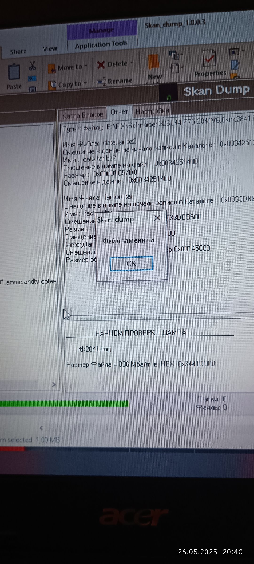 Nisam nisra iscitao od starog firmwarea,originalni dump nemam niti imam programator, ,dali je moguce sa Skan_dump_1.0.0.3 i firmware od Soundmax SM-LED40M01S rtk2841.img kopirati bin od panela zatim taj bin staviti u firmware od Schnaider 32SL44 , i zamolio bih te da mi posaljes Skan_dump_1.0.0.3