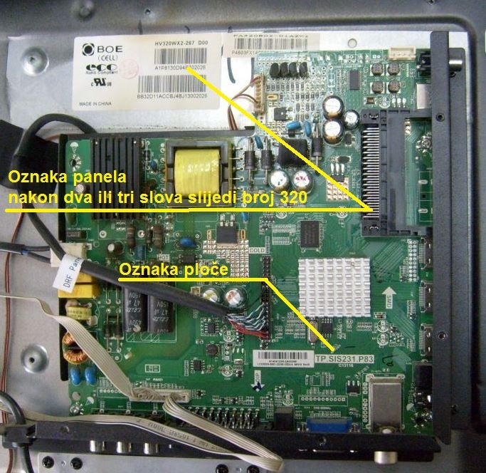 Da bi znao da li ovaj fajl odgovara tvom TV-u, moraš otvoriti aparat. Na štampanpj ploči piše krupnim slovima oznaka ploče a na poleđini panela je zalipljena naljepnica sa oznakom panela.