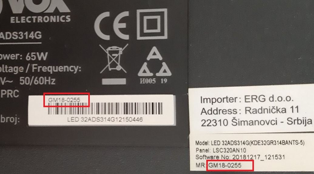 Zdravo mozete li mi reci gde se nalazi Gm broj kako bih nasao Firmware Za vox televizor. Hvala :)