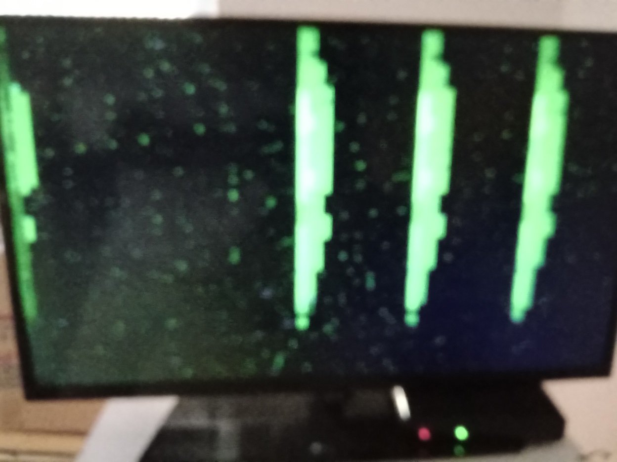 u rezimu na primer: hdmi, bez ulaznog signala ima dve tri zelene vertikalne linije, a