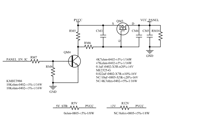 Samo da pitam,posto mi je nelogicno,nasao sam koji je tranzistor,prevedeno sa service manuala uopste nije ta smd oznaka nego druga,zato mi je i bio zastoj.....Na slici gore Pvcc dolazi preko otpora R12V kao i R5V...ali 0 otpor stoji na R5V,a nema nista na R12V,verovatno koristi 5V posto je 12V napajanje celog uredjaja,kao izbor.Nasao sam sve komponente,ispratio do 10k otpor ka procesoru.Pin 158 ne daje napon ,a procesor se solidno greje.Koliki napon treba da bude na PANEL_EN IC preko unimera i da li je stalno prisutan,posto nemam osciloskop?Procesor ne otvara QM4,na bazi tranzsitora QM4 je 0V,na S tranzistora QM3 imam 5V,a na D nista........Procesor????