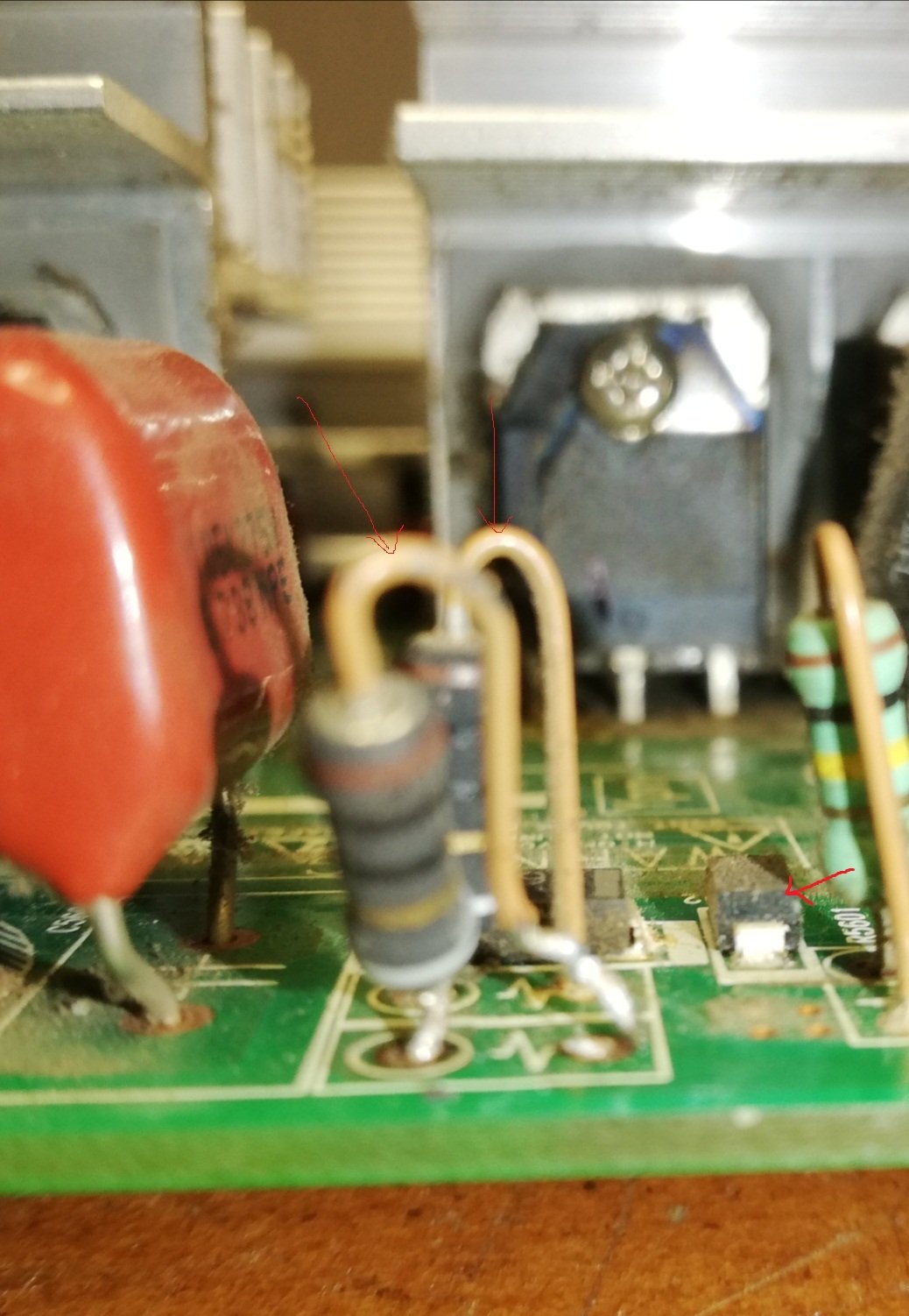 Bila mije sumnjiva na slici oznacena dioda pisti na ispitivacu za diode,medjutim paralelno spojena 3 keramicka otpornika po 10 oma isptavni.Dva mala otpornika oznacena na slici su izgleda sive boje pa izgledaju uzivo kao da su gorili izmjerim 10 oma,jel i vama izgledaju da nisu gorili?