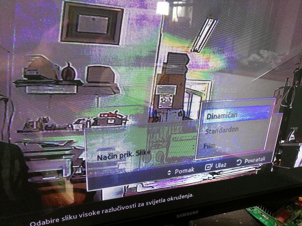 Hvala KASA1. Probao sam. Test slike odradi svoje ali i slika i dalje nije dobra. Vide se na primjer obrisi prizora koje sam imao na ekranu prije testa. Obris slike koja je bila zadnja kad je TV normalno radio i obris servis menija u koji sam usao prije ovog testa. Ovi obrisi postaju jaci kada ekran prelazi iz crne u bilo koju boju. Takodjer bijeli ekran je jako "prljav" i ima tamnijih dijelova. Uslikat cu nekoliko slika ubrzo pa okaciti.