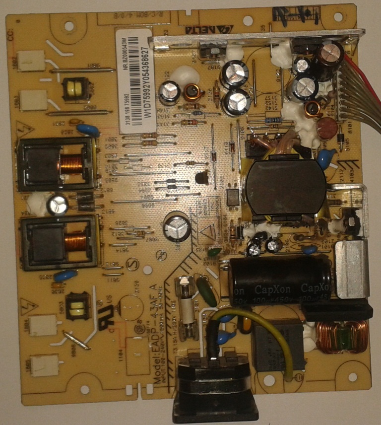 Na monitoru menjani naduveni elkosi i radio 24 sata normalno.Ostao upaljen celu noć,ujutro nije davao znake života.Proverio osigurače(oba)ispravni,napona ima ali varira.Napon naizm.struje dođe na grec (223v) a na izlazu jednosmerne 221v.Pokušana zamena greca isto.Šema mreže i svaka druga pomoć, savet bi dobrodošla.