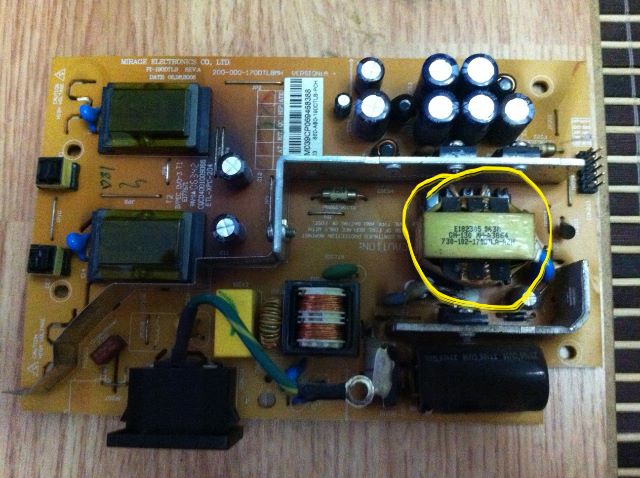 Monitor se uopste ne ukljucuje, kada sam ga otvorio jedino se cuje konstantno caktanje iz trafoa oznacenog na slici.