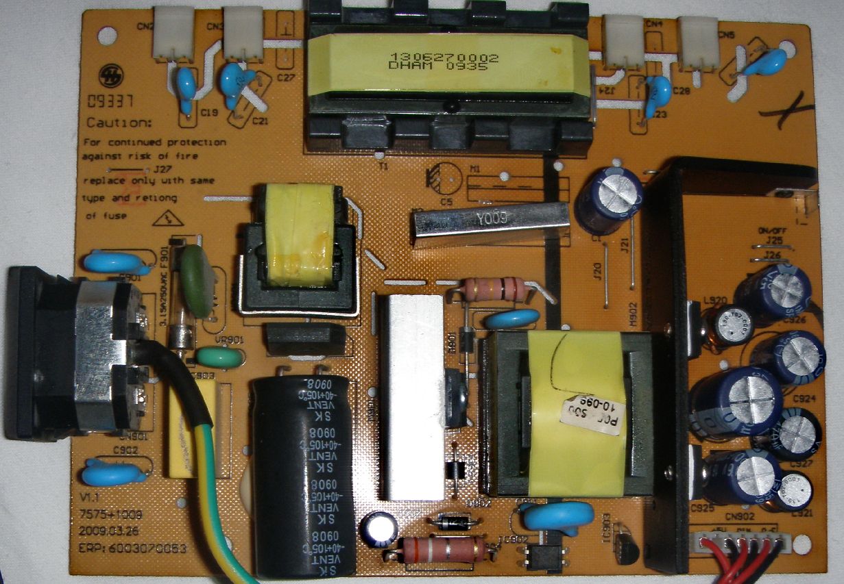 OPIS KVARA: Kada upalim monitor slika se normalno pojavi par sekundi i onda nestane, odnosno nestane pozadinskog svjetla, te nakon još par sekundi pođe blicati kontrolni LED. Mjerio sam mrežne napone: u Standby +5V i +12V, a kada upalim imam +5V i +14,4V dok ima osvjetljenje (par sekundi), zatim pada na +12,2V. Mijenjao sam smd integrirac (Q4) P2804NVG i C1=470uF/25V, ništa se nije promijenilo. Sumnjam u inverter trafo T1 oznake 1306270002 DHAM 0935, ali nisam siguran. Pokušao sam i njega kupiti, ali bezuspješno po ovoj šifri. Monitor je proizveden u Kini. Molio bih sugestije ako je netko riješio sličan problem ili shemu.