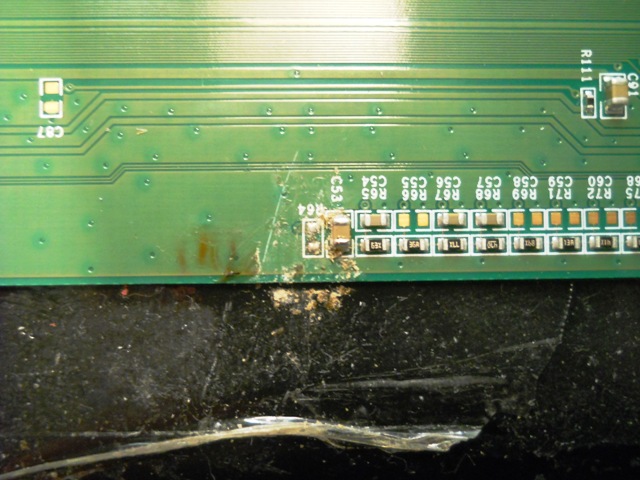 OPIS KVARA i PREDUZETE RADNJE:monitor otvoren precesljan svi naponi uredni naponska ploca ok, procesorska takodje isprobano na drugom panelu, zapravo glavni problem je na ploci panela, kontrolisao sam napone... naravno osigurac ok, na stabilizatoru imam 3,3v on je ok, imam 5v, sve se cini da je ok ali nesto ne pase, znaci nema slike samo osvetljenje neko minimalno se vidi, probao sam da menjam kolo G32 nasao sam na jednom starom panelu L32 medjutim isto se ponasa, menjao sam jedan smd kondenzator koji mi se cinio da je probio, i jedan otpor koji kao da je izgoreo premerio sam ga i u kolu kad je na njemu je 100R a kada ga izvadim 60R ubacio sam tu obican otpor 100R i uvek preegori kada ukljucim monitor naravno nista se ne desava od poboljsanja, on je na poziciji R64 i na njemu imam 12v znaci izmedju dve tacke gde se lemi, potrudio sam se da budem prilicno detaljan, ubacio sam i slike, izvinjavam se svima sto je malo lose nalemljeno to je bilo samo za probu lemilicom, ako neko ima neku semu za taj panel znacilo bi mi ili neki dobar savet bio bi vam zahvalan :)