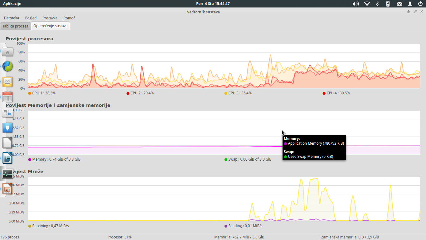 Interesuje me koliko je zauzeće procesora na linuxu i koja je mašina u pitanju i kolika je maksimalna brzina transfera između dva računara.