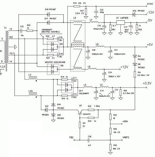 obicno svako kvalitetno napajanje ima za svaki od tih napona poseban choper trafo i takodje svaki od njih primarni deo ... prekontrolisi sve u primaru "drajvanja" chopera za 3,3V....