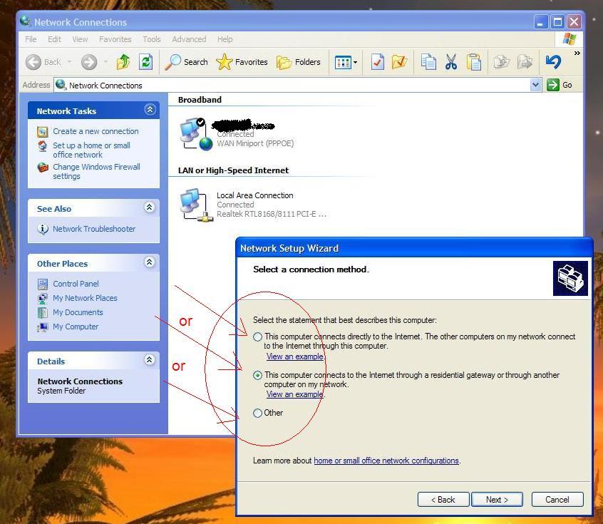 ja sam ovo napravio na Dial Up konekciji, jer je i kod mene ovo komp na routeru. A ti ako imas ADSL naci ces ovo na adsl konekciji, wireless i sl. tako isto