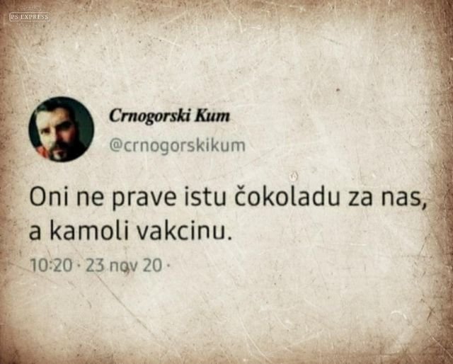 Nikša, samo ti zezaj krizu, to je opšte prihvaćeno po svim društvenim mrežama, portalima...opšta reklama korone a odgovora na realna pitanja nema....