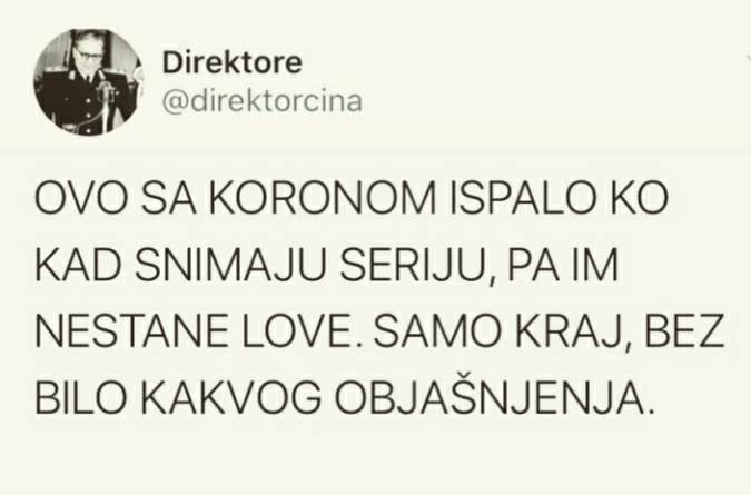 Tu ima istine mladi pogotovo pretezno nece da nose maske,zato sto njima virus nemoze uglavnom nista al bas ih briga sto ce ga nekom starijem prenijet,a on ce mozda i umrijet zbog toga.nike je napisao: ↑09 svi 2020, 19:12Toce, pa šta te sprečava da nastaviš sa obrazlaganjem svoje teorije? Tema je tu! Navali!