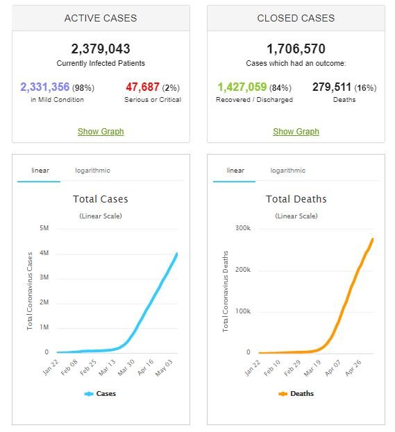 Znači Slovenija, koja sama sebe naziva kao jednu od najuspešnijih zemalja u borbi sa ovim birusom, puno je slabija od ITA. Mi imamo na 2Mio gradjana nešto malo preko 100 mrtvih...toce je napisao: ↑14 svi 2020, 02:34U Italiji ukupno novo oboljenih 4480, ukupno oboljenih 33,190 oboljenih izlečeni i preminuli ukupno 41,035 preminuli 427. Tu nešto ne štima kao prvo kako su izlečeni kad nema leka još za corone ? Italija je 60 milona stanovnika i to je normalno da u Italiji ima oko 400 smtnih slučajeva..