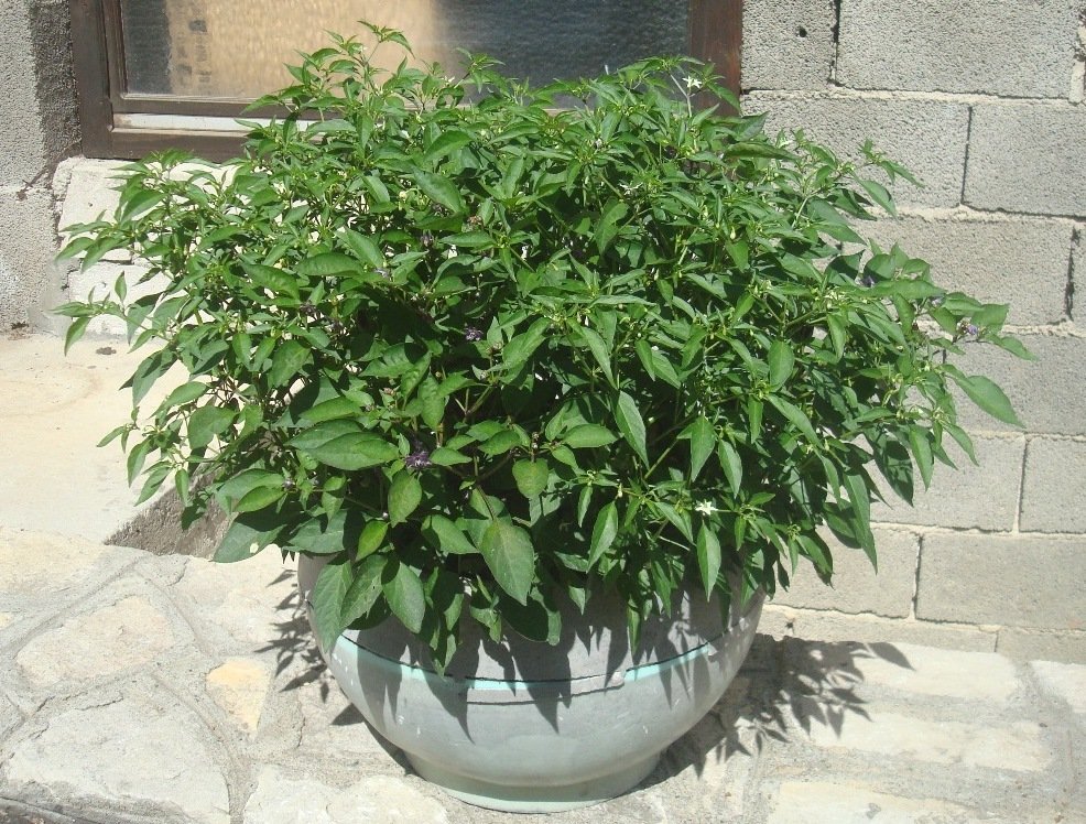 u fazi cvetanja, prosle godine sam kupio u saksiji i sačuvao seme...evo cveta belo i ljubicasto, siljate i okrugle paprikice, jedva cekam da zametnu plod i sazre...ljute ko otrov. Posadio blizu servisa u neki ćup od gazde lokala.