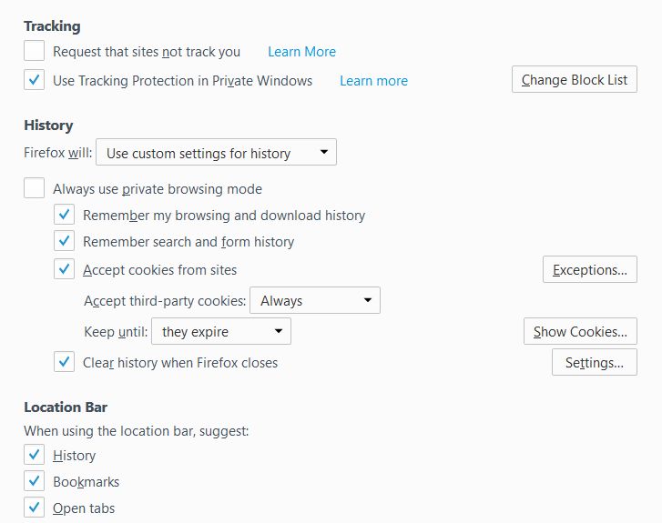 Tools / Option / Privacy