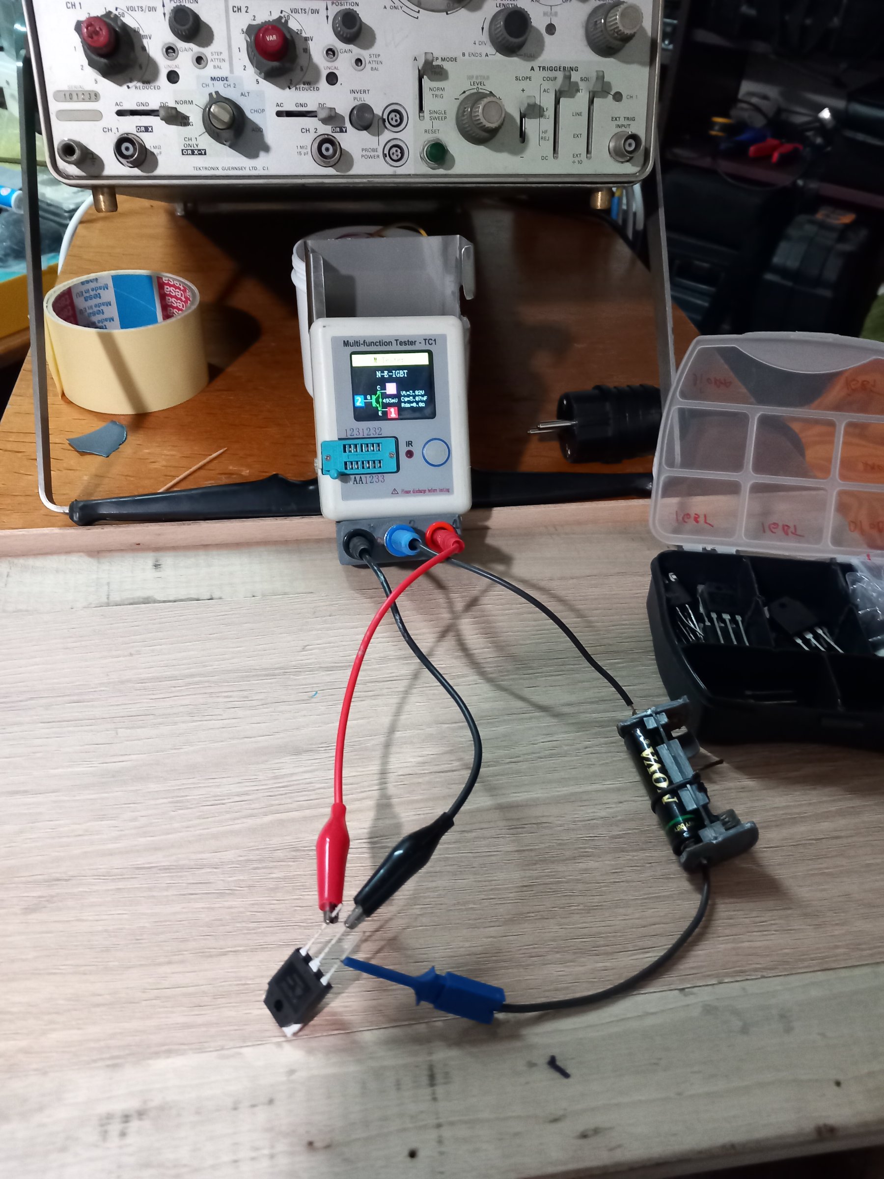 Da bi TC1 mogao da analizira snažne IGBT tranzistore potreban je dodatni napon na gejt tranzistora.U tu svrhu sam koristio 2A bateriju tako da plus ide prema G.