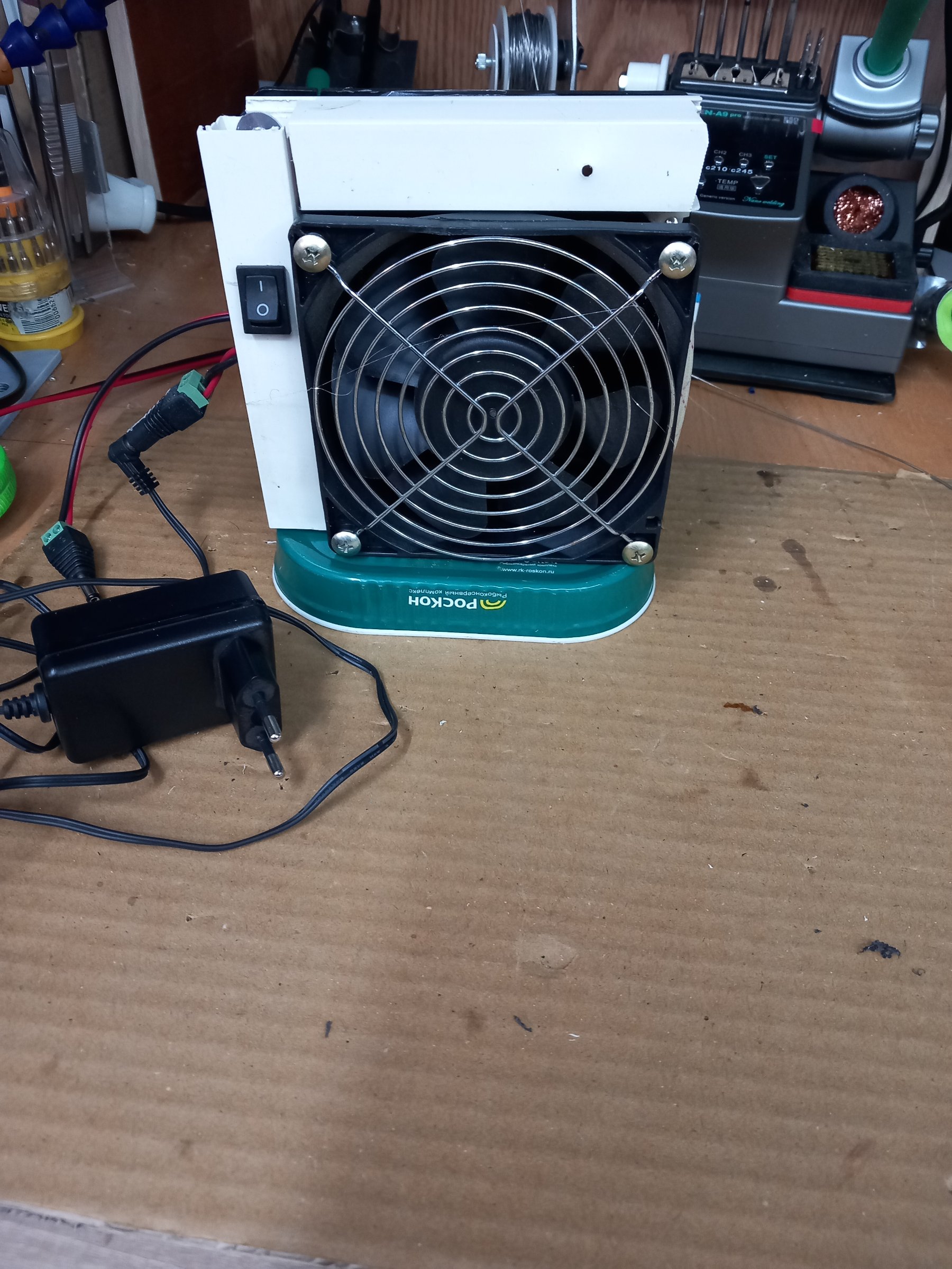 prelomio te sam odradio drugi aspirator po uzoru na već poznato rešenje.Nije mi trebalo puno vremena i u tu namenu sam iskoristio ventilator od aparata za zavarivanje 24V 0,35A veće brzine 12x12cm (ta veličina je bitna, manje ne više da), karbonski filter za kuhinjske nape )može i običan ali je ovaj bolji, njega sam pre par godina naručio iz Kine) kao i jedan ventilator u kvaru 14x14cm (takav beše neispravan) kao i jedna konzerva ribe(prethodno je pojedena) za malo postolje.Ventilatori su spojeni a razlika od 2cm je popunjena kanalicom 20x20 te je na jednom delu postavljen prekidač.Napaja se iz adaptera 24V 0,8A.I to dobro radi, mobilan je, malo je bučniji zbog veće brzine ali ne smeta, uvek je tu muzika koja pravi društvo.A kako je zadnji dan ove godine svima koji ovo čitaju želim dobrog zdravlja. Ovaj sam ostavio jer ne smeta