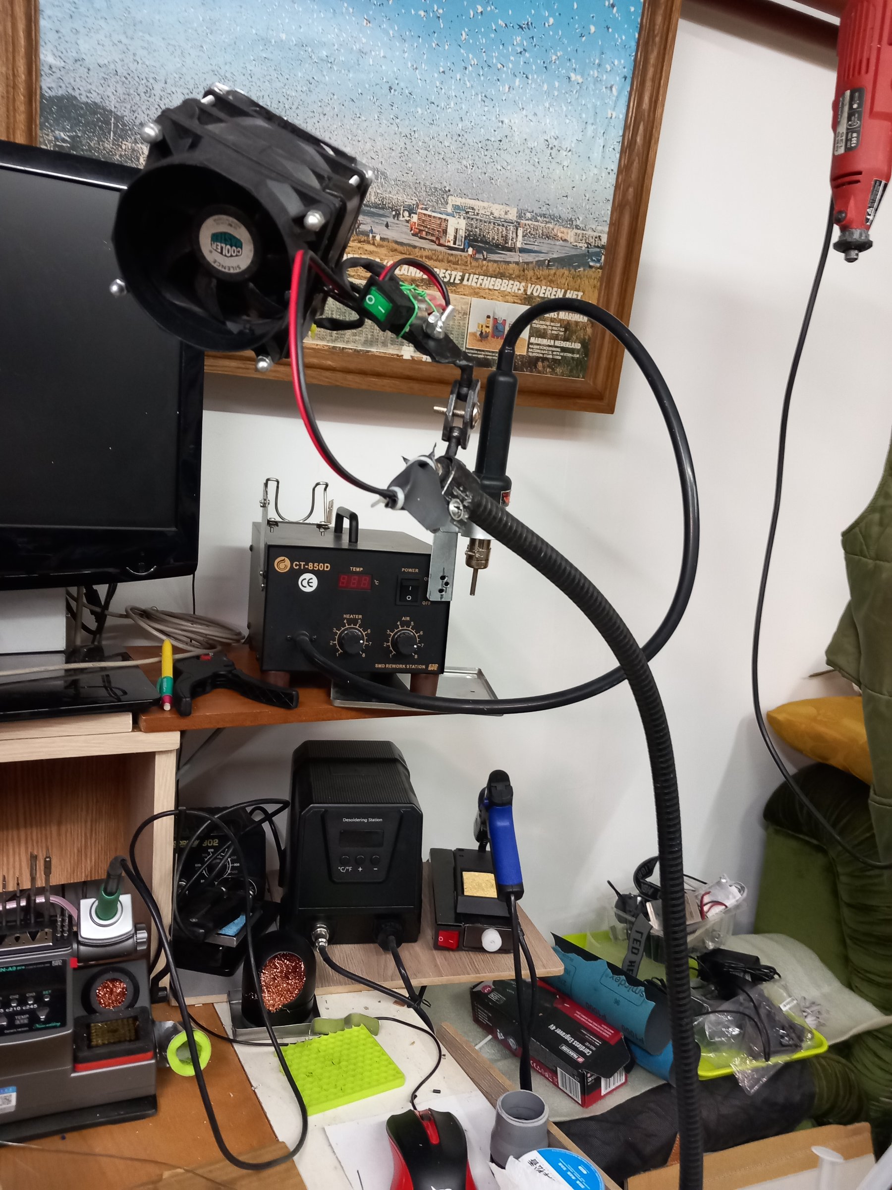 Kako sve više koristim i lupu i mikroskop zavisno od potrebe postojeći aspireator za isparenja na savitljivom crevu je ponekad teško pozicionirati a da ne smeta pa sam juče