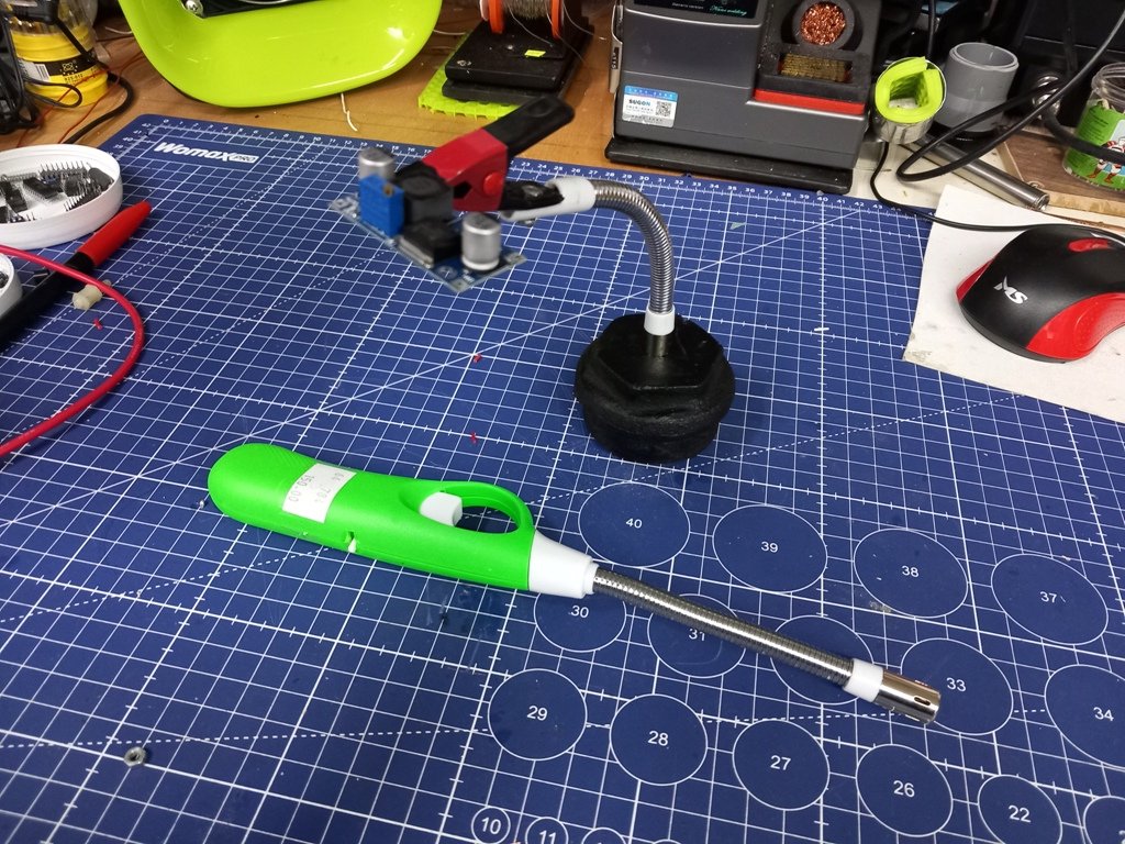 Nedavno se pokvario plinski upaljač i kako je metalni deo savitljiv setih se da taj deo iskoristim za pravljenje treće ruke.Za oslonac sam iskoristio čep od gusanog radijatora, izbušio rupu od 11mm dubine 1cm i nasadio savitljivo crevo.Za oslonac se može baš svašta iskoristiti, imaju čepovi za odzračni ventil tako da je ruoa već prisutna uz dodatak lepljenja sve se može fiksirati.Prodfavnice materijala za vodovod i grejanje imaju dosta toga što se moše iskoristiti.
