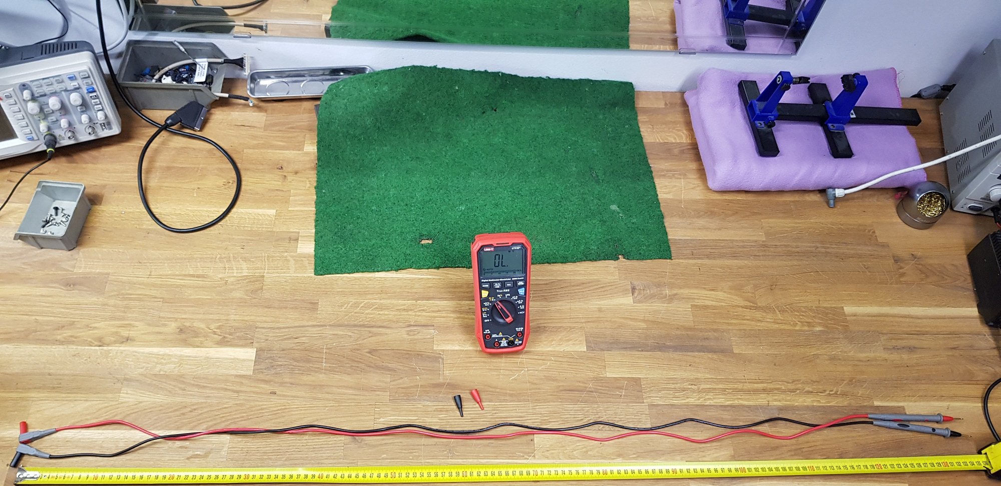 Mjerni kablovi koji dolaze uz instrument duljine su 120cm (ne računajući duljinu pipalica). Iznenađujuće dobri, s pozlaćenim vrhovima, dovoljno gipki i na nižim temperaturama (iako nisu silikonski već od neke meke plastike) te otpora od svega 0.05Ω što dokazuje da im je jezgra ipak dosta "mesnata".